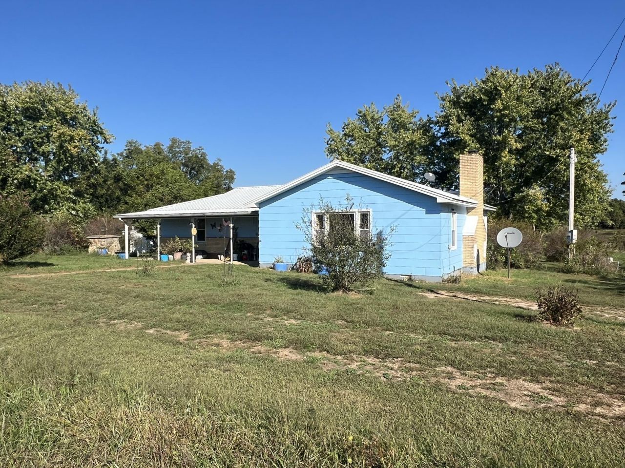 3BR/2BA Ranch style home on 40 acres m/l.This 1584 sq ft home has double pane windows, metal roof in 2013 good exterior paint and in 2020 new propane fired central HVAC system along with new well, pressure tank and water heater. The wood burning brick fireplace is functional but has not been used in several years. Large living room and Master bedroom both have newer carpet, walk-in shower in the master bath. There is hardwood flooring in the dining room, guest bedrooms and hallway with vinyl in the bathrooms, utility room and kitchen. The kitchen includes a propane range and at least 1 refrigerator. Nice covered front porch is 8x30.Private well and septic tank, 2023 installed a whole house generator that is also propane fired, solid well house and a 12x12 storage shed. The side yard has Black Cherry, Apple and Persimmon trees.The 39.4 acres is mostly open with a couple ponds, 1 older loafing shed and newer perimeter fencing which is a mix of 5 strand barb and woven wire. The property has no restrictions and has paved frontage.